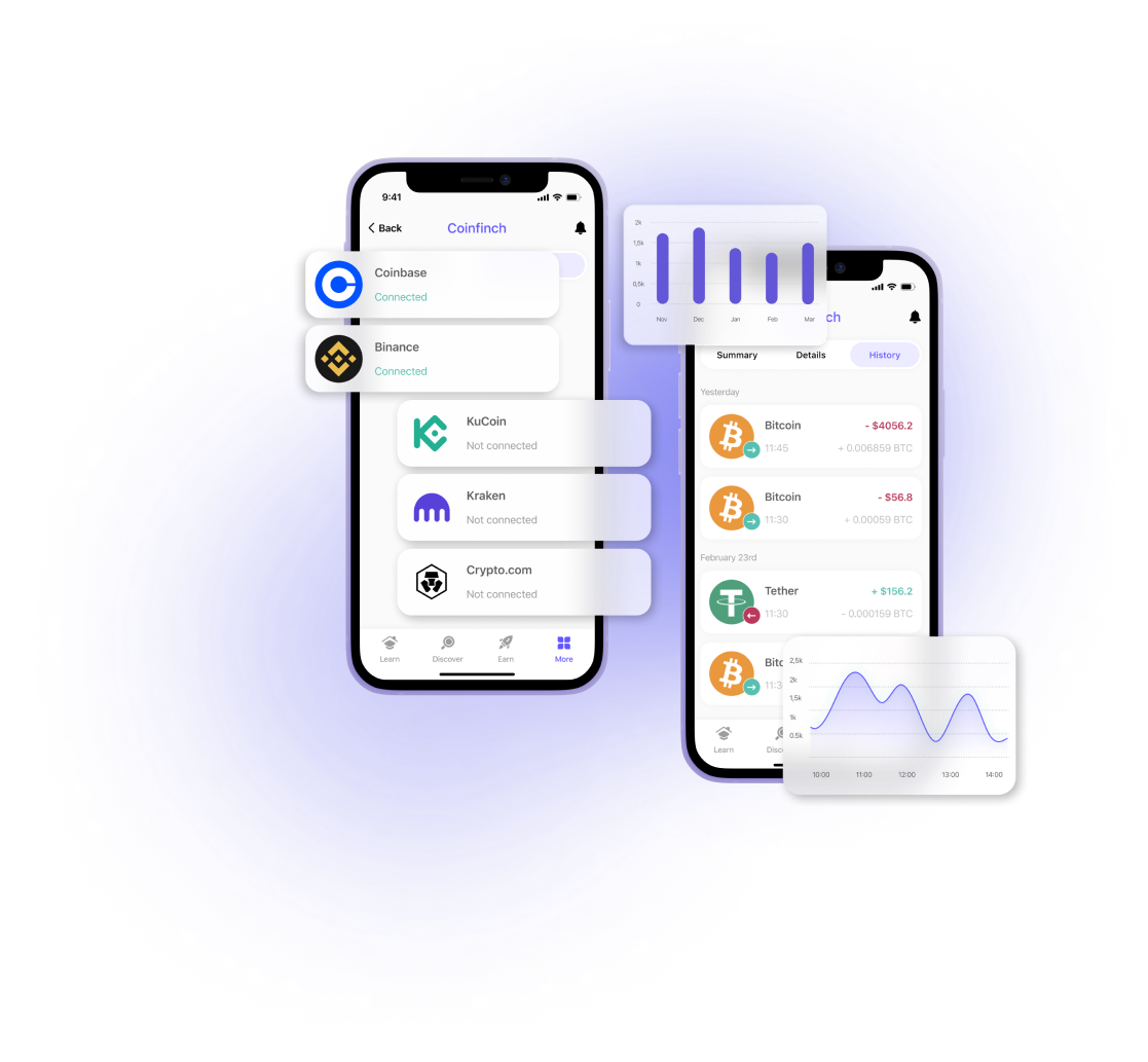 Tired of yet another wallet you need to keep in your phone ? Connect all of your wallets in Coinfinch and track your portfolio performance from one place.