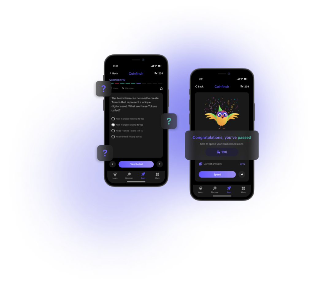 - Play and Earn: earn finch coins by simply learning about digital currency.