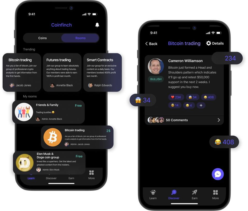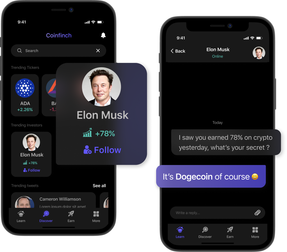 This quote inspired us to build the first social investing application for crypto, where you’ll learn about crypto, find the most trending investors that will help you with money-making advice, and be able to discover new ways for you to earn without putting much effort into it.