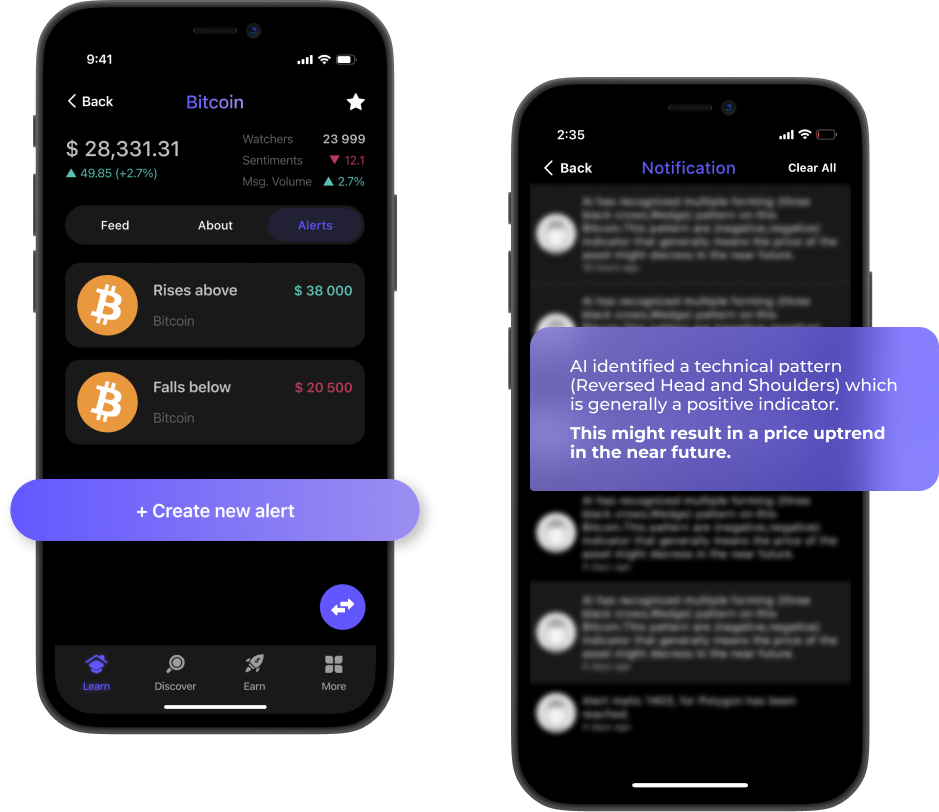 Lean back, and rest while our AI algorithms do the job for you. No need to stare at your screen while trying to find technical positive or negative patterns in the chart data, we will monitor the data 24/7 and alert you the second we find it.
